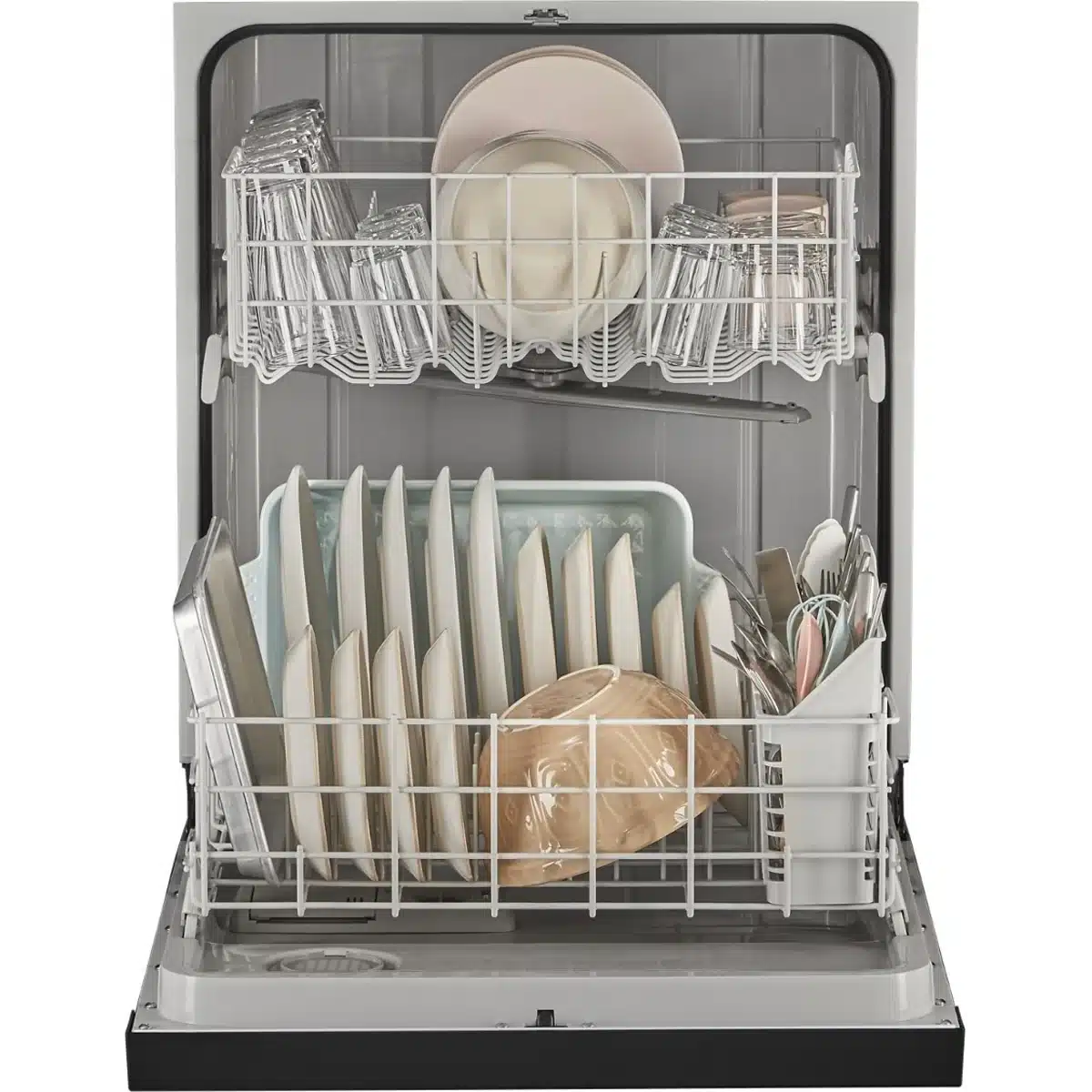 Its 12 place setting capacity is well suited for small to medium-sized households. The PVC-coated racks are designed to provide functional dish organization while promoting proper water circulation during washing.