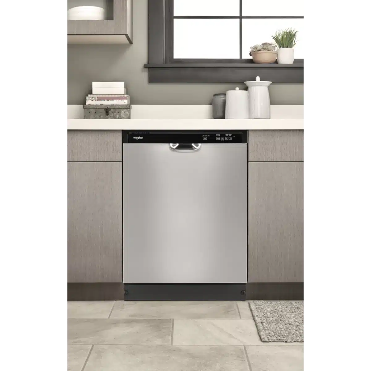 The Whirlpool WDF332PAMS built-in dishwasher is designed to meet essential daily dishwashing needs with simple and reliable operation. Its full console configuration provides front-access controls for easy cycle selection, while the standard 24-inch width allows for easy installation in most residential kitchens.