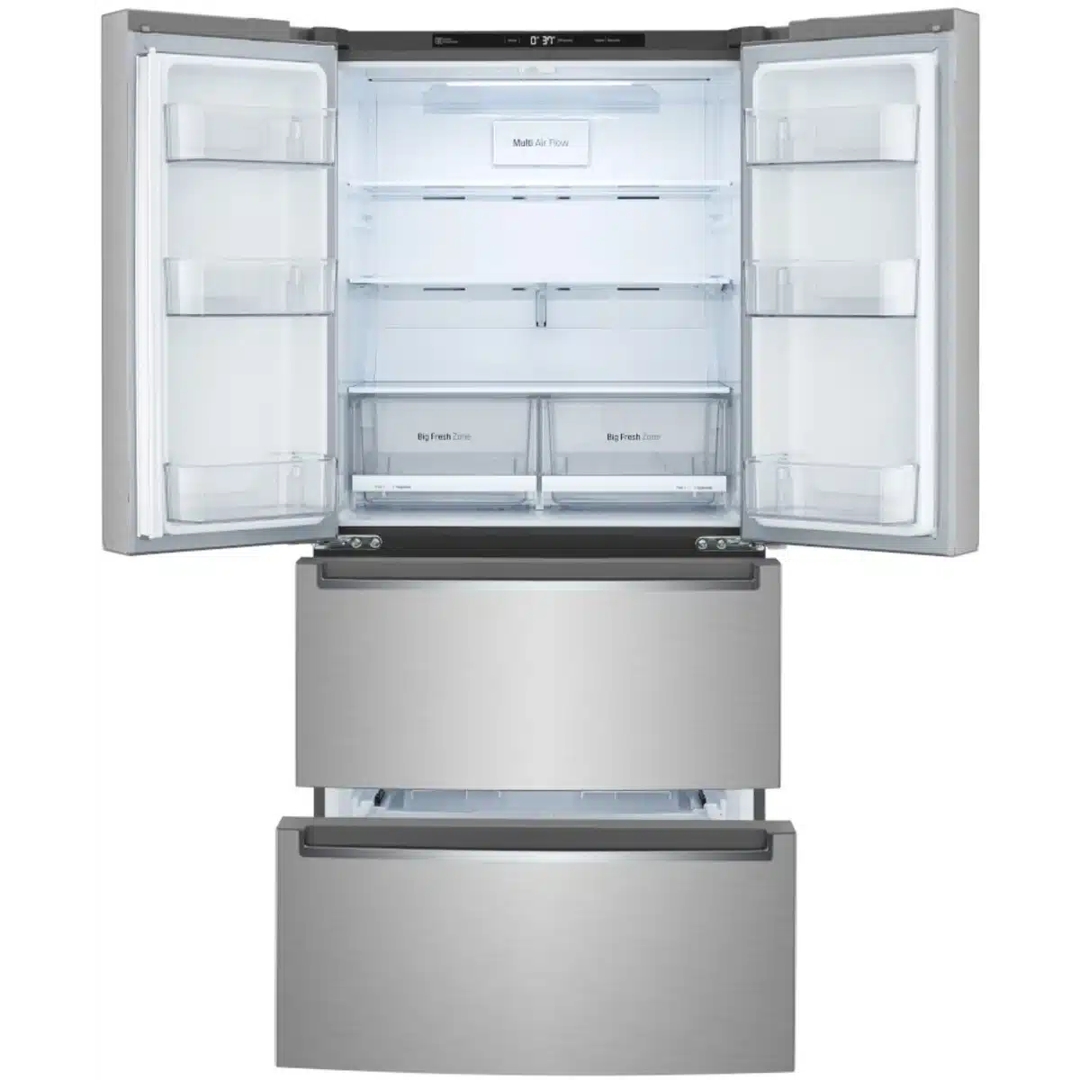Malgré son format compact, l’espace intérieur est bien réparti : clayettes en verre trempé ajustables, bacs à humidité contrôlée, balconnets de porte modulables et éclairage DEL. Le congélateur inférieur à tiroir facilite l’accès aux aliments congelés tout en offrant un rangement efficace.